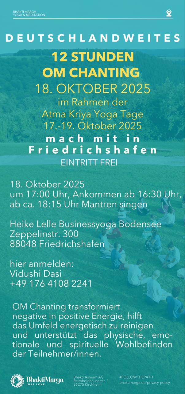 Hier folgt noch eine Einladung zum deutschlandweiten 12 Std. OM Chanting, am Samstag, den 18. Oktober um 17 Uhr in Friedrichshafen .